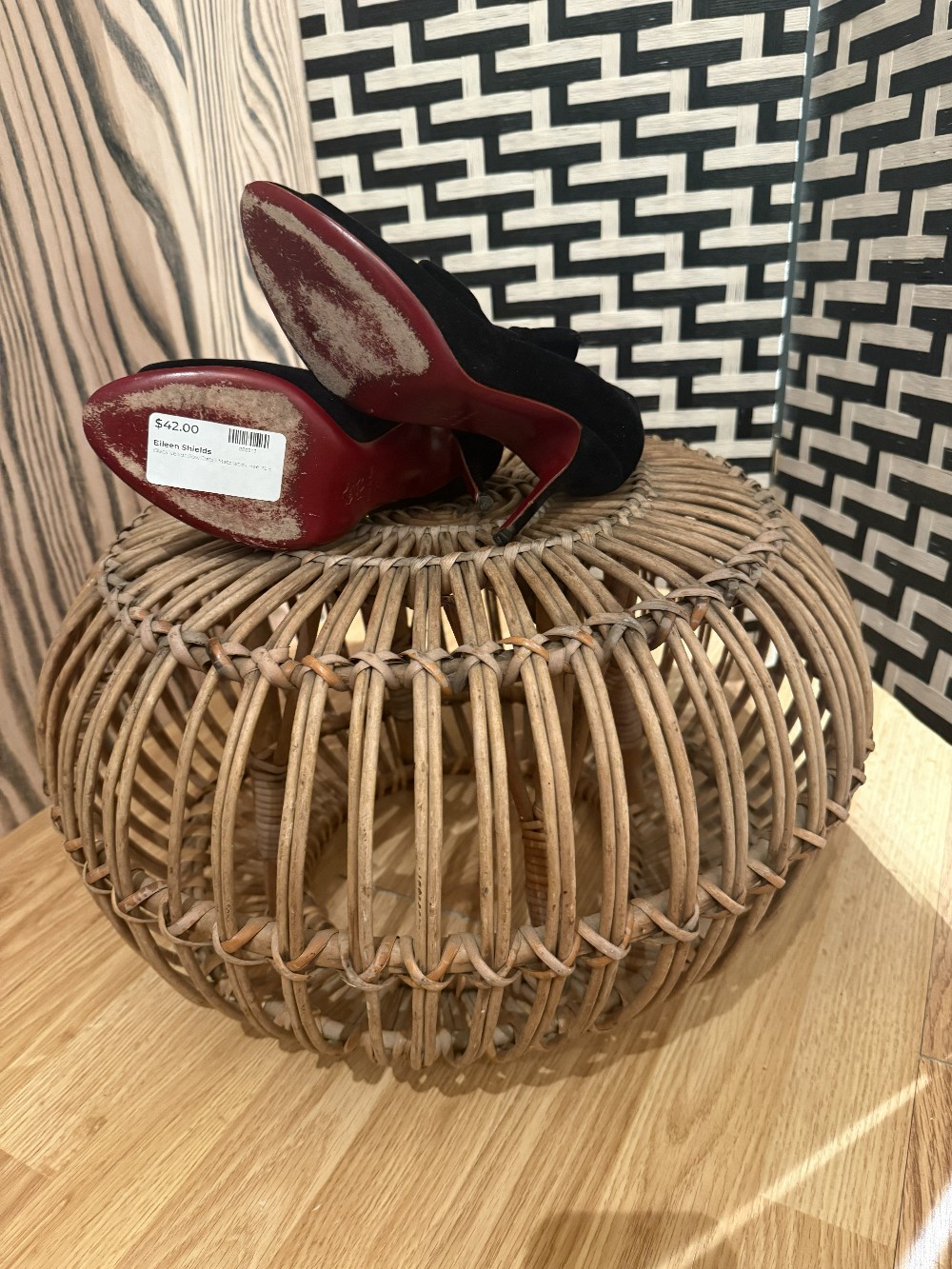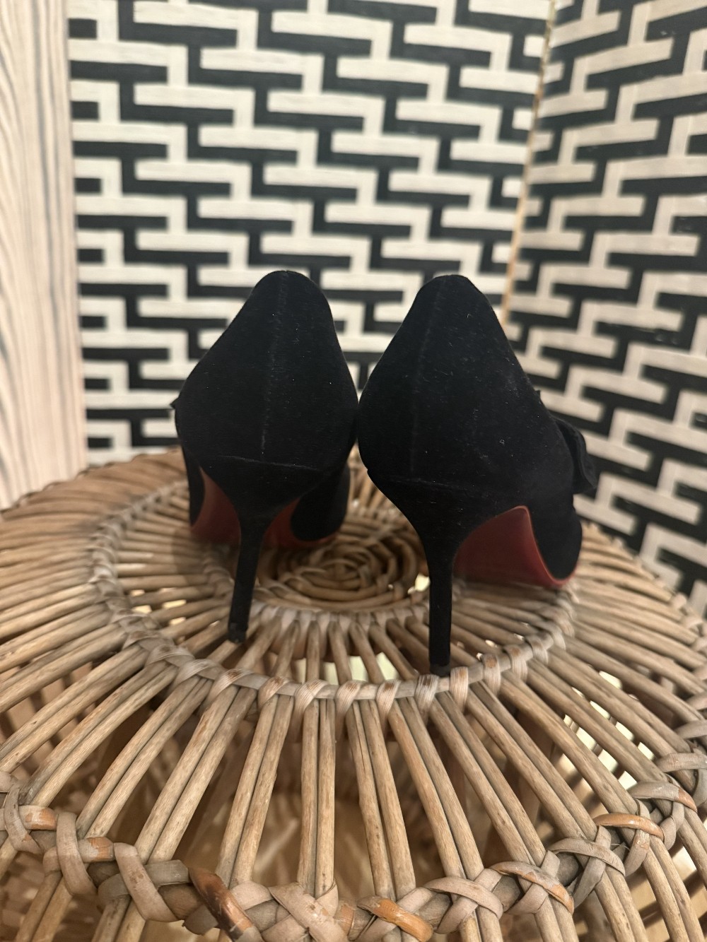 Black Velvet Bow Detail Matchstick Heel sz 6