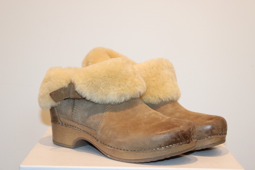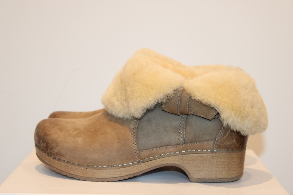 Dansko Women's Bessie Burnished Nubuck Boots. Versatile, shearling lined, low pull-on bootie that can be worn two ways - with the top folder over, the boot showcases a cozy shearling detail.